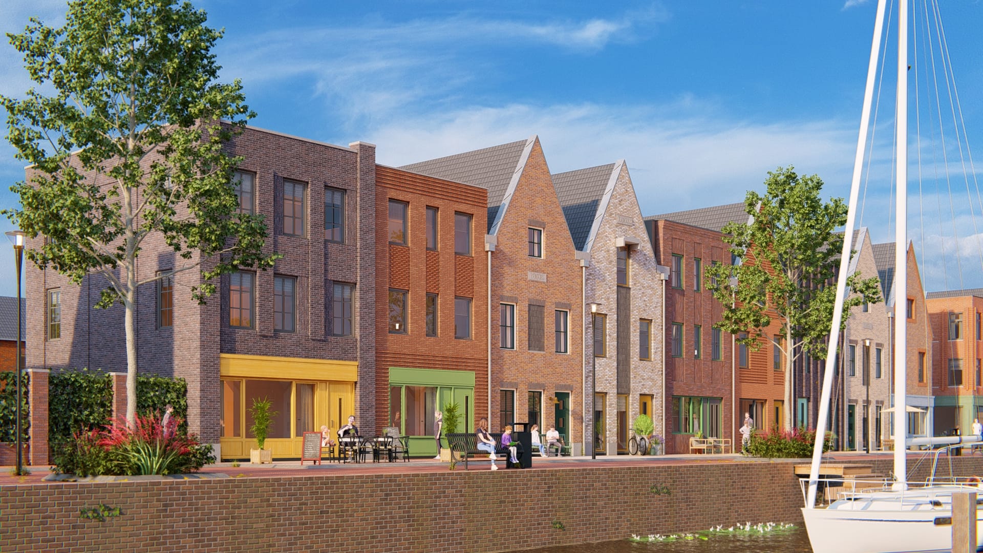 De kadewoningen liggen direct aan de kade met uitzicht op de jachthaven. Met circa 130 tot 147 vierkante meter gebruiksoppervlak bieden ze volop ruimte. Vanuit de keuken uit over